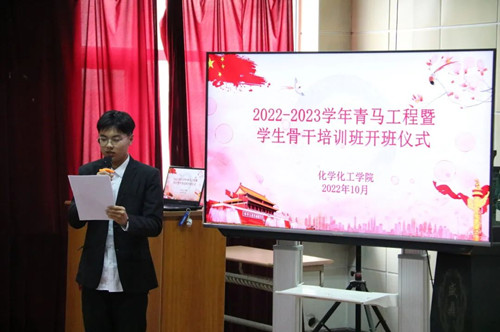 开班式上,相关老师介绍了开展学院青马工程培训的背景、意义和培养目标,以及本期培训班的课程设置、培训安排、考核方式。学院党委副书记薛鑫强调全体学员要严格要求自己,努力成为理想信念坚定、听党话跟党走的先行者;努力成为服务学生、服务学校的践行者;努力成为密切师生关系、促进师生联动的推动者,从而为建设好学化院做出积极努力。
