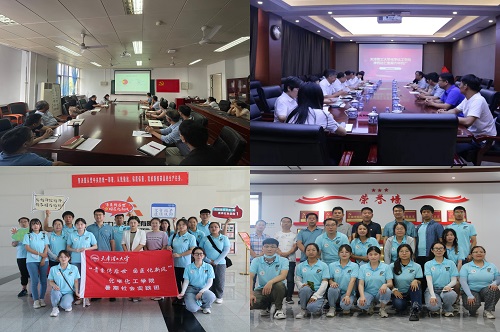 重践深悟,凝聚奋进前行的精神力量。学院党委坚持以学促行、以学促干,组织多种多样的主题活动,让师生在实践中凝聚奋进的精神力量。6月23日,学院应用化学学生党支部开展“悟党史精神,做有为青年”主题党日活动,并举行新发展预备党员宣誓仪式;7月1日,学院党委组织“庆七一、喜迎党的二十大”主题知识竞赛,不断提升师生党员的理论知识水平;7月5日,学院制药药学学生党支部与南开大学药学院研究生党支部开展“联学共建聚合力,携手同心促发展”支部共建主题党日活动,依托以研带本、支部共建、院校协同等方式,谋求凝聚力、促发展、创一流;7月13日,学院党委组织教师党员开展“喜迎二十大 奋进新征程 追寻使命之源”主题红色教育活动,感悟时代责任担当,汲取奋进力量。7月19日,学院党委与津药达仁堂(原中新药业)第六中药厂党委举行党建共建活动,并举行党建共建基地揭牌仪式,实现了资源共享和“1+1>2”的效果。广大师生党员纷纷表示,在学思践悟中不断坚定理想信念,在奋发有为中践行初心使命,建功新时代。