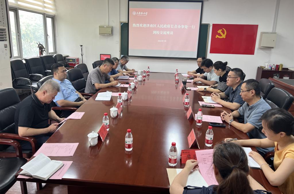 近日,津南区人民政府长青办事处书记崔永亮、副主任努尔阿卜拉.麦合木提和长青集团一行7人莅临威廉希尔WilliamHill开展调研交流。学院党委书记霍虹、院长白国义,副院长刘勇、赵炯鹏及部分教师代表参加座谈,学院副院长赵炯鹏主持座谈会。