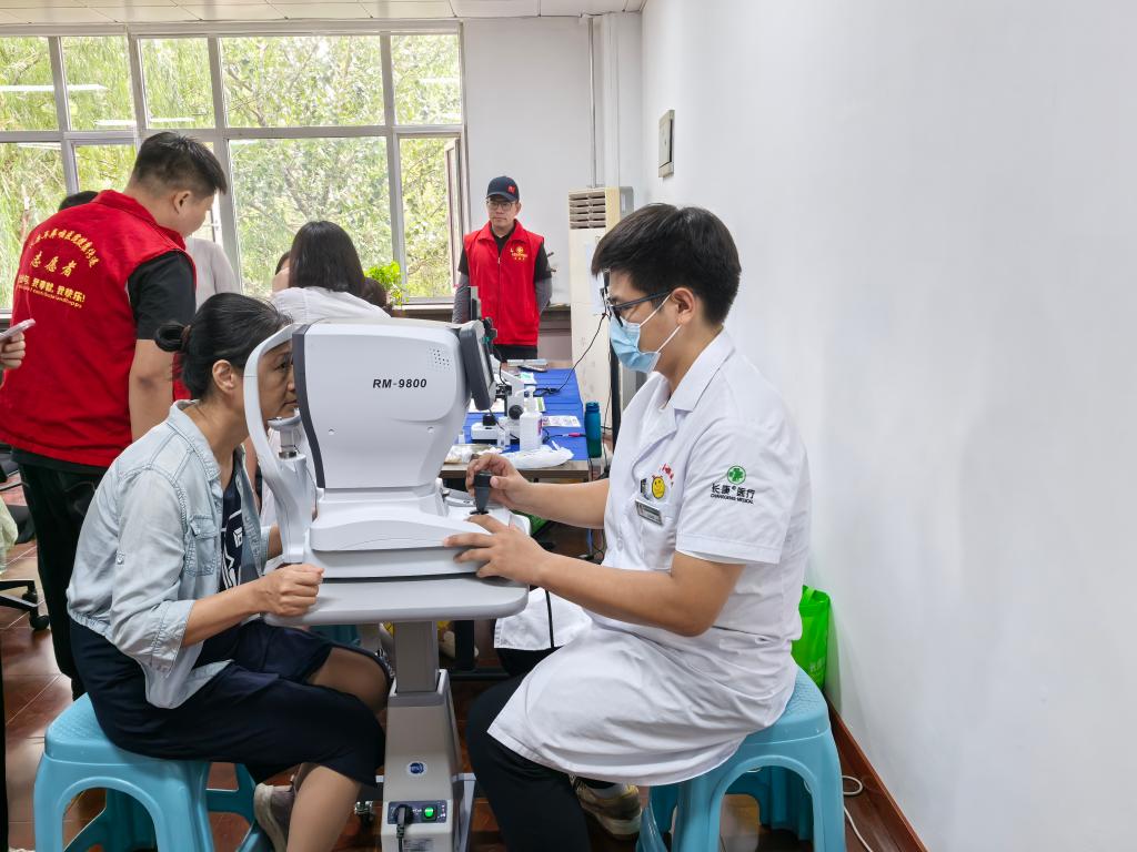讲座结束后,刘院长进行现场健康咨询,医院工作人员通过专业仪器为教师们做眼科和耳鼻喉科筛查。