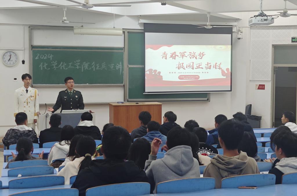 宣讲会上,董浩围绕国防基础知识、征兵报名条件与流程、入伍优待政策等内容,详细介绍了大学生在应征、服役及退役期间所享受的优抚政策与注意事项,鼓励在场同学们积极响应国家号召,融入军旅生涯,立志保家卫国。