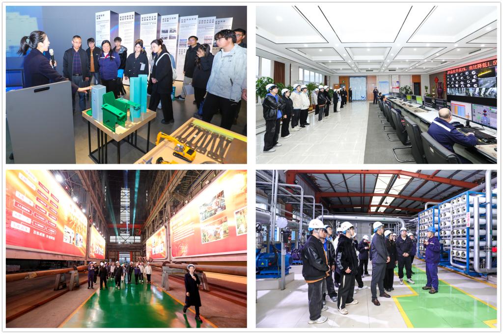 学院师生们首先参观了公司生产能源管控大数据中心、游客服务中心、企业文化展厅,深切感受了现代智慧钢铁企业的独特魅力与创新实力。随后,师生们深入生产一线,亲眼目睹了从原料投入到成品产出的钢铁生产的全过程,见证了现代科技在钢铁冶炼中的广泛应用与显著成效。
