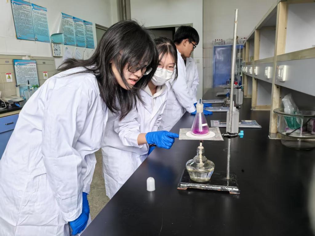 作为大中小一体化科学教育的重要实践,本次科创营以“触摸化学脉搏,科创赋能未来”为主题,通过“理论+实操+互动”的模式,打破传统课堂边界。来自天津市多所中学的学员们在实验专任教师邓记华和大学生志愿者的引导下,穿上实验服,亲手操作仪器,完成4个经典化学实验: