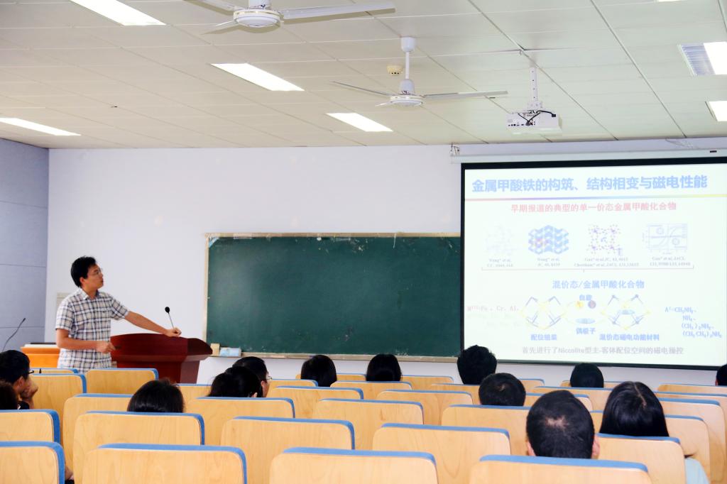 会上,孟祥太、赵炯鹏、陈嘉媚三位老师分别以《基于串联反应策略构建含硫杂环化合物》、《铁性相变配合物的构筑与磁电性能研究》、《共晶药物的性质改良及其案例分享》为题,围绕自身科研工作的典型案例进行了交流和分享,与会老师认真聆听,并就热点和难点问题进行了深入的讨论和交流。