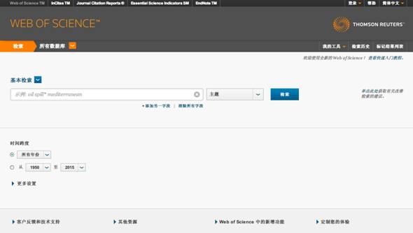 校内IP,输入网址http://apps.webofknowledge.com,进入检索界面,如下图所示