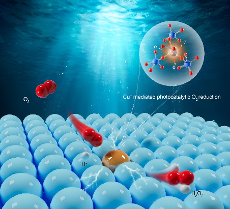 光催化O2还原制备H2O2是一种可持续、环境友好的绿色技术,近年来受到人们的广泛关注,但其效率受限于低反应活性及选择性。针对这一挑战,研究团队将具有可调氧化态的孤立Cu单原子锚定在WO3上,作为高效活性中心提升光合成H2O2效率。光催化结果表明,当Cu原子价态主要为+2时,光合成H2O2活性为WO3的4.7倍;当Cu原子价态为+1时,光合成H2O2活性为WO3的17.3倍。原位表征以及第一性原理计算结果表明,一价铜作为活性位点可增强O2分子的吸附与活化,加快光生电子的转移,优化OOH中间体到H2O2的转化过程。