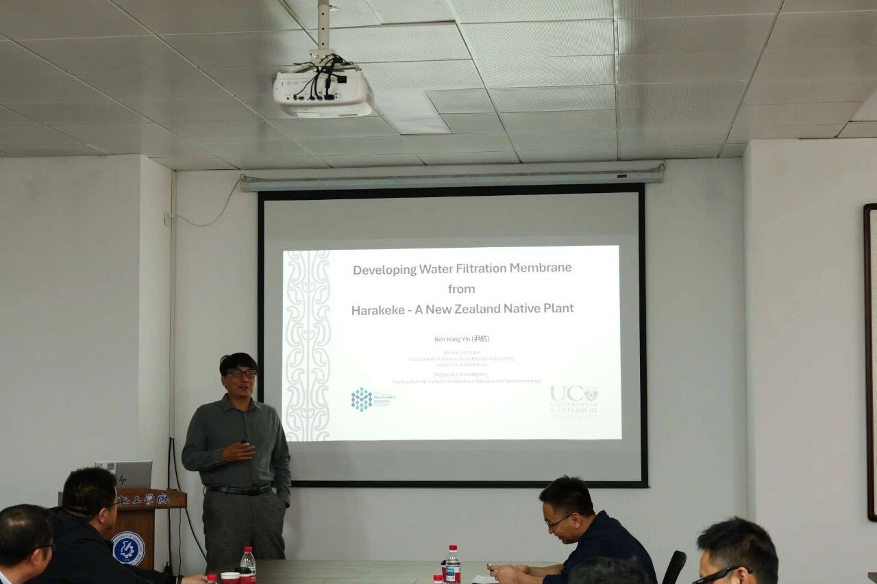 新西兰坎特伯雷大学尹航高级讲师以《基于新西兰本土植物Harakeke的水过滤膜开发研究》为题,分享了一项融合材料创新、文化尊重与社会可持续的跨学科研究成果。报告系统介绍了其团队利用新西兰特有植物Harakeke(新西兰亚麻)开发新型饮用水净化膜的科研历程。除聚焦于膜材料的技术性能外,报告深入回顾了Harakeke植物对毛利社群及新西兰社会在历史、文化与社会维度的重要价值,并特别强调了邀请原住民深度参与科研全过程所带来的积极影响。报告指出,真正的可持续发展不仅依赖于技术进步与环境友好性,还必须根植于对文化完整性的充分尊重和积极履行社会责任。此项研究为如何开展兼具科学严谨性与文化尊重的前沿科研,提供了富有启发的实践范例。
