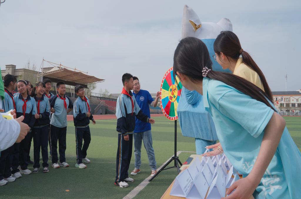 “生态闯关赛”将国家安全知识融入趣味竞技。黄、蓝两队小学生通过幸运转盘抽取“盲盒”题目,“蜜蜂为什么跳8字舞?”“蝗虫的天敌是谁?”“发现有红火蚁入侵应该打哪个电话?”面对题目他们时而托腮沉思,时而热烈讨论,答对题后兴奋得蹦跳击掌。答题以闯关积分形式植入学生认知体系,数据显示,经过3轮情景模拟训练,小学生答题正确率提升80%。