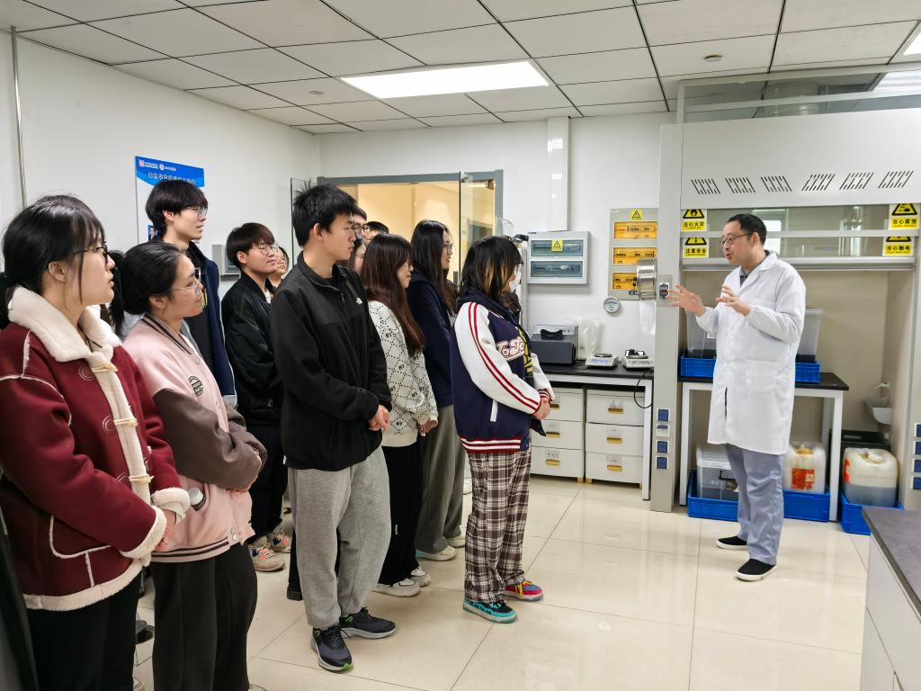 在企业生产车间与研发中心,师生一行跟随企业工作人员深入了解我国医药产业的发展历程、核心技术攻关成果及企业在服务民生健康中的使命担当。随后,威廉希尔WilliamHill专业教师凌宏雷以“一粒药的诞生”为主线,结合传统中药大蜜丸制备流程与现代片剂生产技术,开展沉浸式实景教学。“从药材粉碎到压片成型,看似简单的流程背后,是药物选材、提取、制粒、压片、包衣、干燥等一系列工艺的集成创新。”他以行业关注的“缓释制剂技术壁垒”为例,剖析我国制药领域面临的挑战。“同学们,当我们把中药配方转化为国际流通的现代剂型时,不仅是在守护中华传统文化,更是在筑牢大国医药根基。”他的讲解引发学生对专业价值的深度思考。