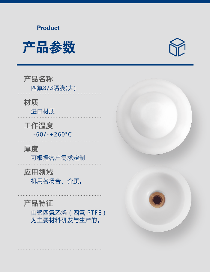 进口聚四氟乙烯隔膜 - 此配件是由四氟(PTFE/聚四氟乙烯)材料研发生产而成的,用于泵类如气动隔膜泵、计量泵等,阀类,规格尺寸可定制!